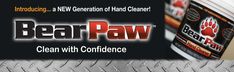 Bear Paw Hand Cleaners deep cleaning action removes dirt, grease, grime, paint, ink, tar, adhesives, varnish and virtually everything else from hard working hands.